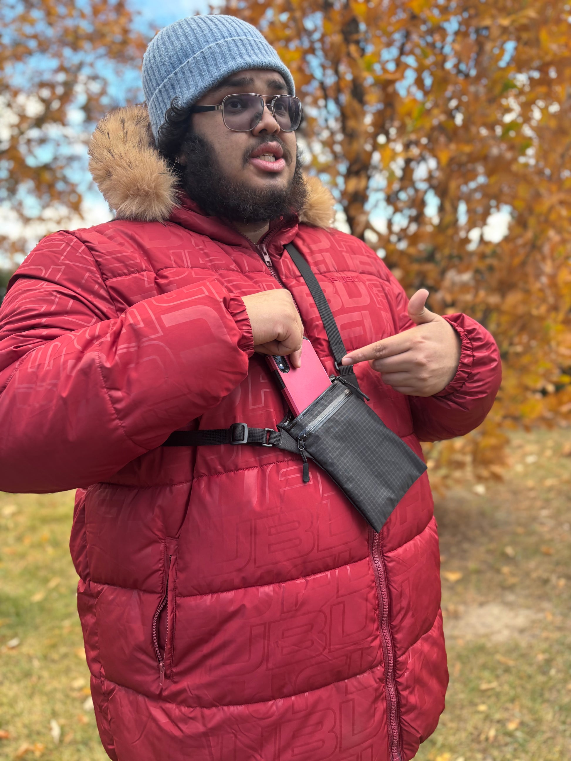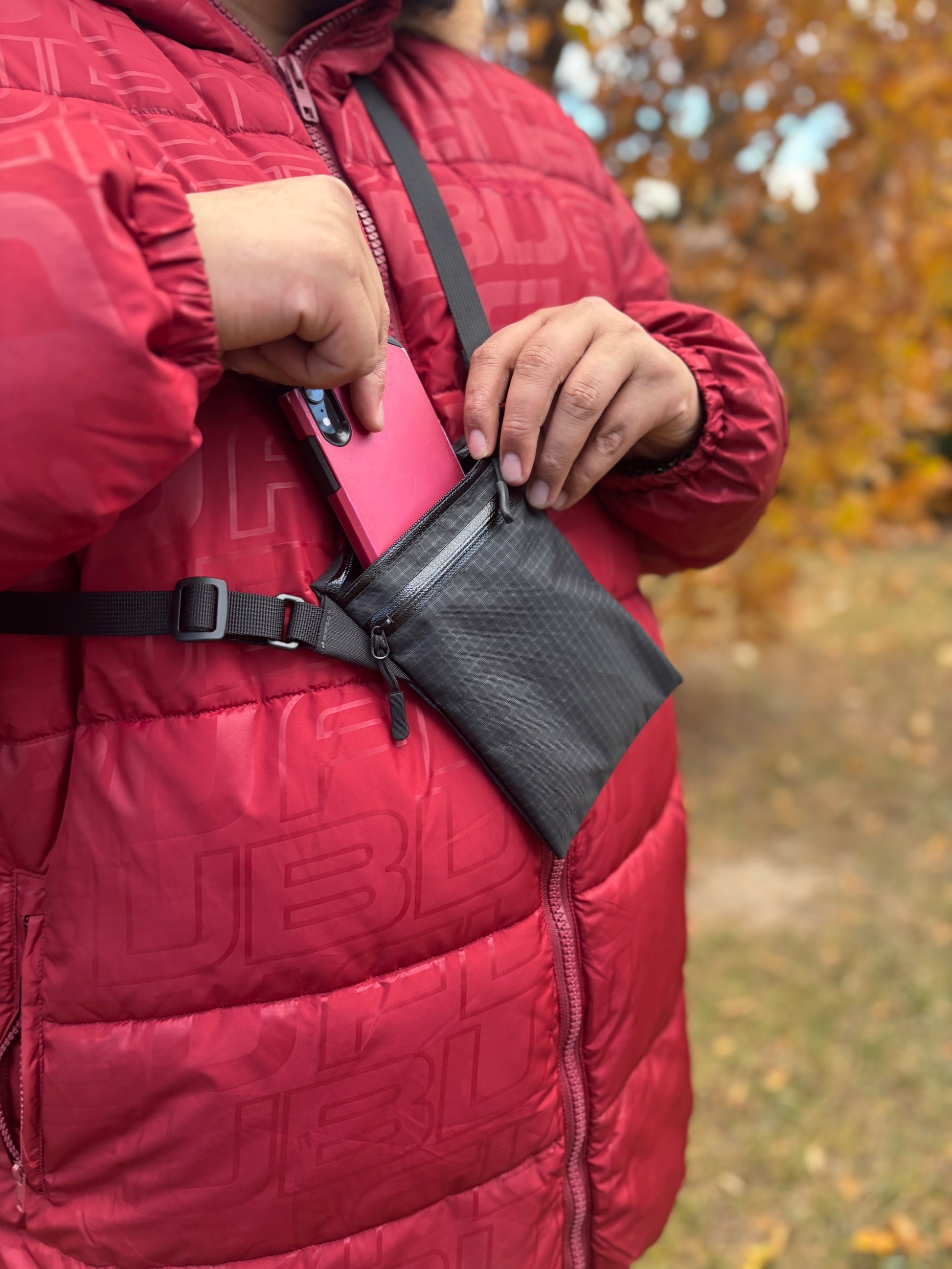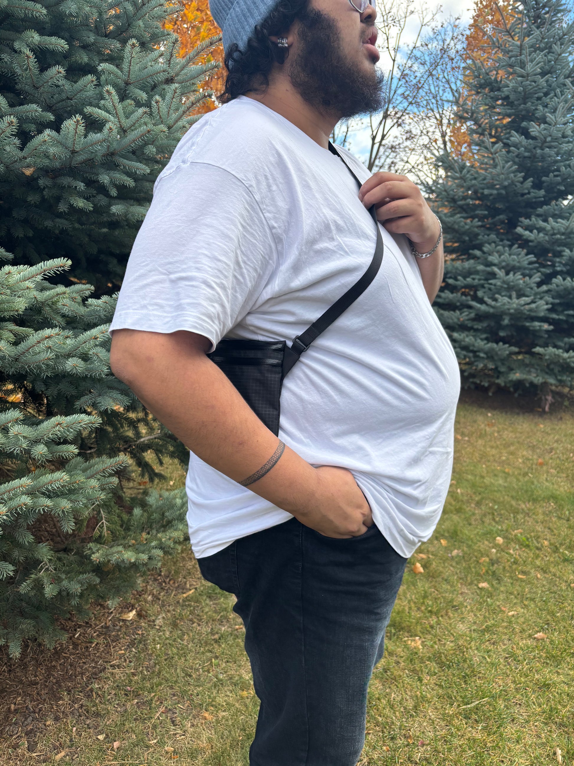 The Stealth Traveller was designed with style and stealthiness in mind. We specifically chose BlackOut coloured UltraGrid due to its sleek colour and durability, while still being a light and soft material. Keep your valuables close to you.